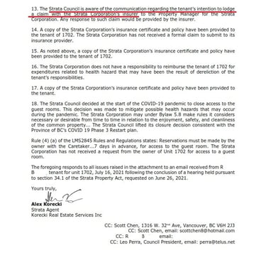 Incidentally, in the below email, Whitelaw-Twining's Partner is correct to state "if you suffered harm or losses, they were at the hands of others......." Those "others" to whom the Partner referred happen to be the Strata Corporation, a policyholder and named insured of his Insurer Client.