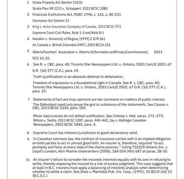 Perhaps, due to some oversight, Whitelaw-Twining defamation and insurance experts assigned to this SLAPP litigation, intended to abide by the CGL policy and the case of Owners, Strata Plan VR 2213 v. Schappert, 2023 BCSC 2043, instead of defamatorily accusing an insured of submission of his claim, under the false pretence of being an insured of INTACT (letter of 07 December 2023, infra)