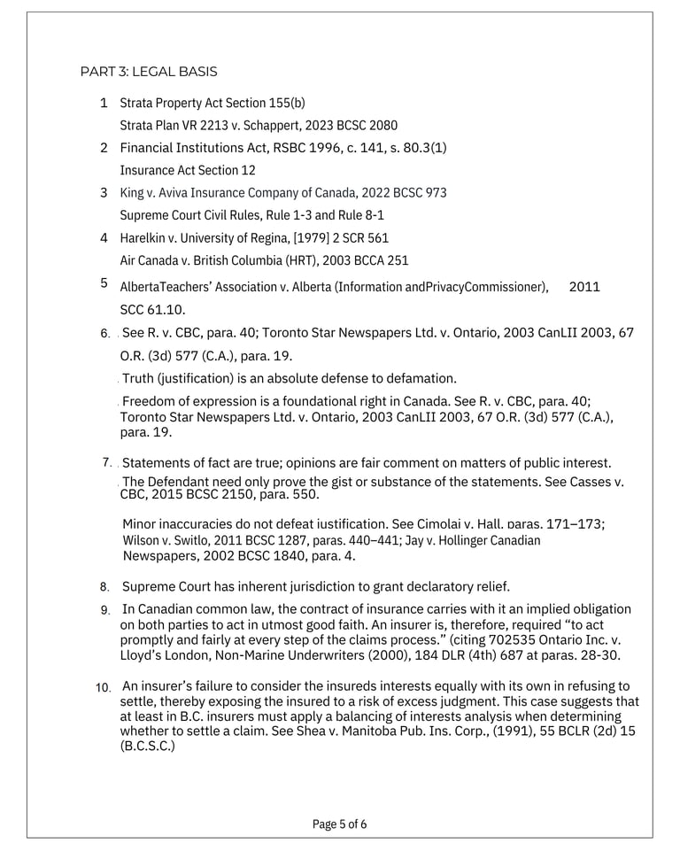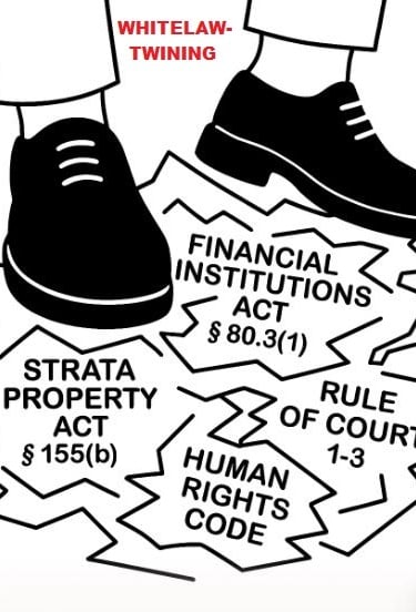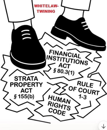It is difficult to contemplate that a Partner of Whitelaw-Twining, a law firm that appears to have staff members of various specialties, filed two (2) SLAPP actions against a Client/Insurer's Named Insured. Nonetheless, the damages occasioned by a malicious chain of events that could possibly still be mitigated, by Whitelaw-Twining's familiarity with Strata Property Act, Section 155(b), and how it applies.