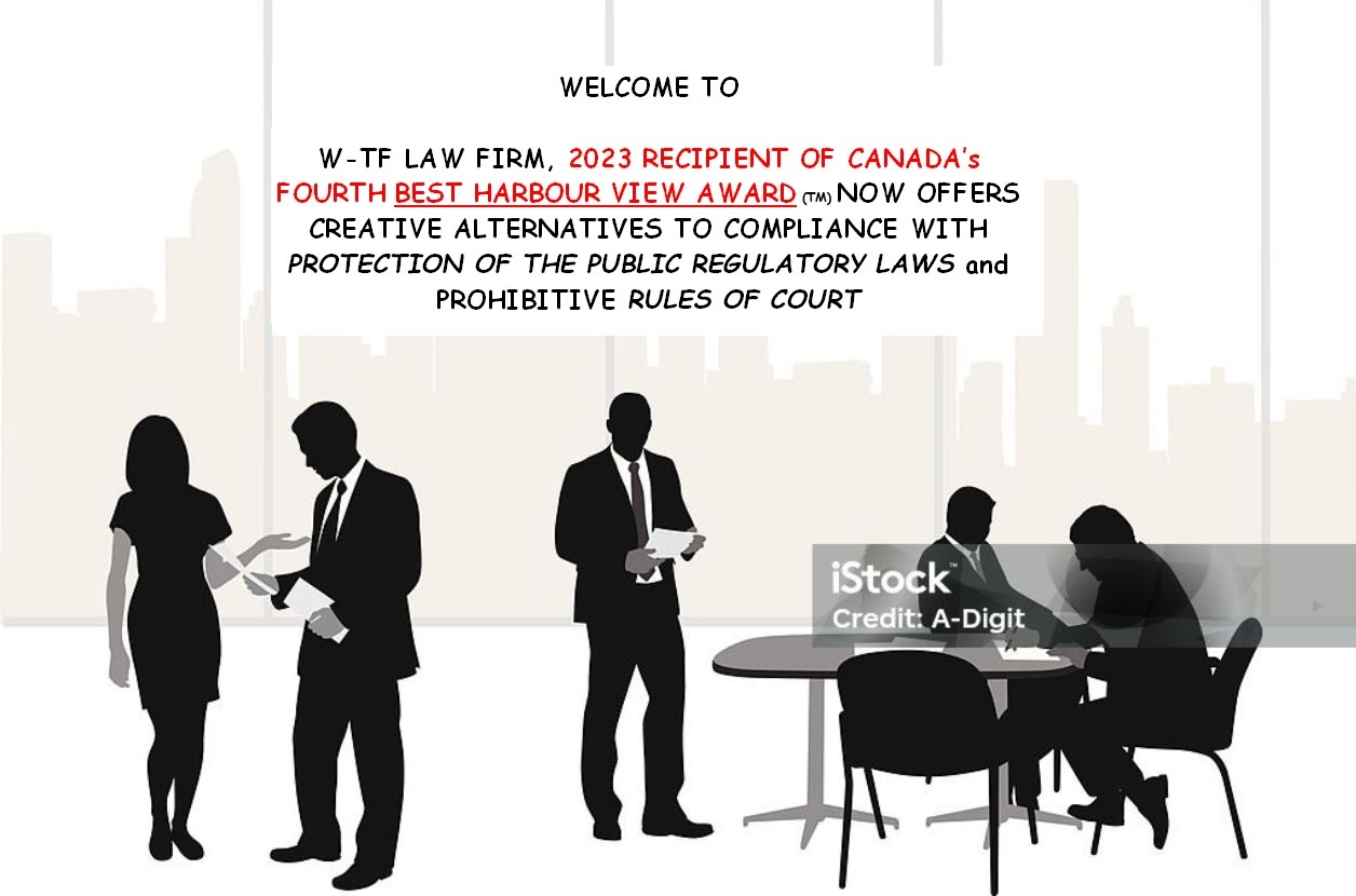 At W-TF law firm our success rate against bewildered self-represented litigants is 92.37 %, and we are always willing to test the limits of the Law Society of British Columbia's (LSBC's) ethical guidelines. We are proud to report that our creative initiatives have permitted that a corporate client, INTACT Insurance, be able to fend off enforcement of regulatory legislation of the BC Financial Services Authority (BCFSA) and the BC Office of the Information and Privacy Commissioner (OIPC).