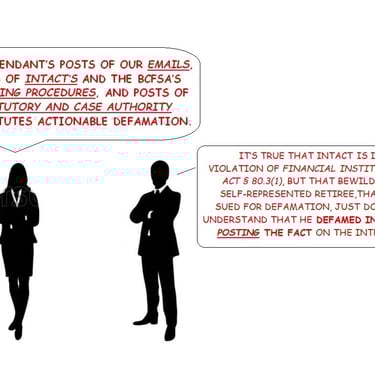 INTACT IS A MERCHANT - IT SELLS INSURANCE PRODUCTS. ITS LAWYERS ARE RETAIL MERCHANTS - THEY SELL WORDS FOR A PROFIT. OTHER MEMBERS OF SOCIETY, AS WELL, ARE CAPABLE OF USING WORDS. IN INTACT's MALICIOUS SLAPP ACTIONS, THE SUBJECT OF THIS PUBLIC INTEREST WEBSITE, THE SLAPP SELF-REPRESENTED DEFENDANT USES WORDS, IN ORDER TO DEFEND THE FACTS AND THE TRUTH, AND INCREASINGLY SO, THE VERY PROCEDURAL RULES OF THE SUPREME COURT.