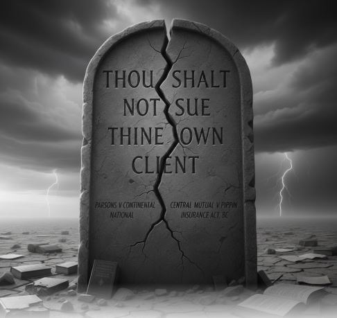 3. Monterra Projects Inc. v. Northbridge General Insurance This case clarifies the Tripartite Relationship. By now, Whitelaw-Twining lawyers Beckmann and Jain have had sufficient time to learn about this solemn fiduciary obligation. If either has any inclination to consult the ethical rules of the LSBC, he or she might realise that suing one's one client if not a highly recommended act.