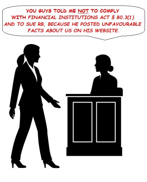(2) Her client INTACT has refused to voluntary comply with the above-cited Insurance Act, Financial Institutions Act and Court Rule 1-3