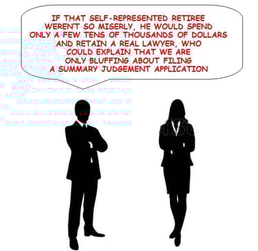 Their Counsel Meera Jain's recent announcement of her intention to file yet another "Application for Summary Trial or Summary Judgement " presents yet another layer of hardship for the retired tradesman SLAPP Defendant and his wife.